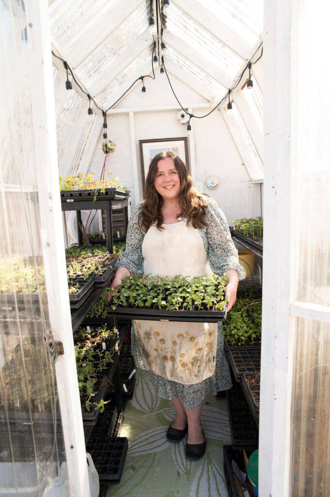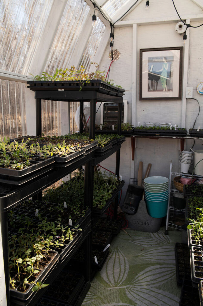 The seed-to-vase process starts in January, when the grow lights turn on, and the eucalyptus and lisianthus go into their seeding trays. More seeds are added as the weeks go by, until the growlights indoors and the greenhouse outdoors feel like they’re bursting at the seams.