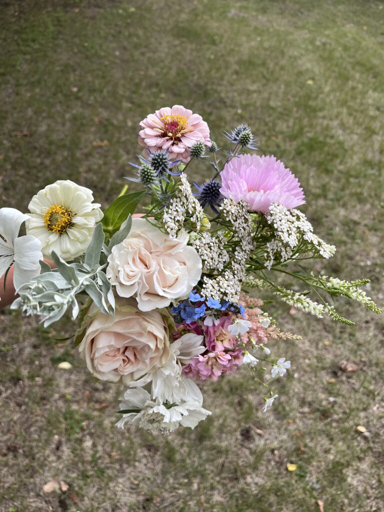 - One week before the wedding, I’ll share some pictures of different flowers that are in the garden in your colours, to make sure we’re on the same page. Once that’s confirmed, your order will be cut in the field on the Wednesday or Thursday.