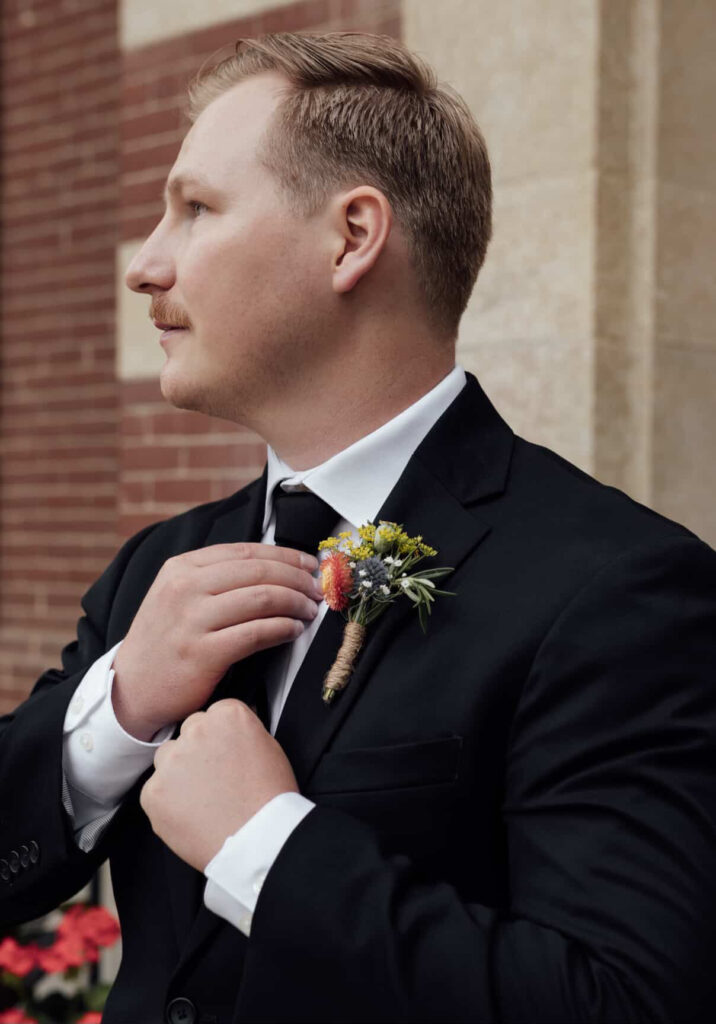 At Shifting Blooms, we believe in small boutonnieres. A delicate something the groom and groomsmen would be happy to wear. Every effort is made to use tougher flowers that can stand up to a hot day and lots of hugs.