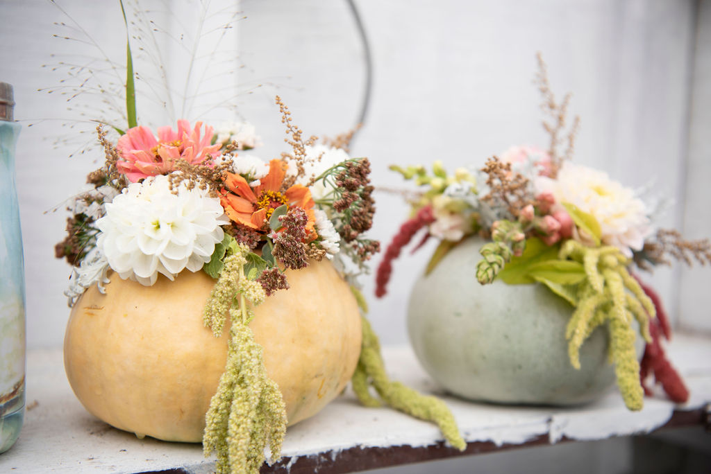 Pumpkin centrepiece classes can be hosted either at the flower farm or a location of your choosing. It is ideal to book this class by August so I can better ensure I have enough pumpkins or have time to source additional ones if needed. However, you may check with me during September/October to see if I still have enough supplies.